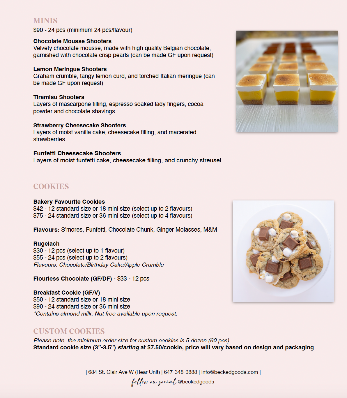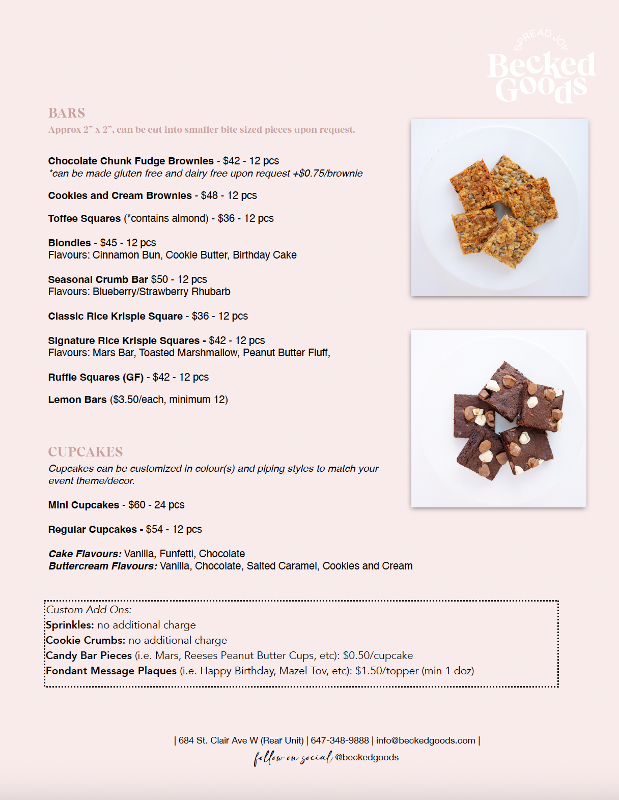 Please note lead times on certain items may vary due to availability. Email us at info@beckedgoods.ca to check availability and start planning!