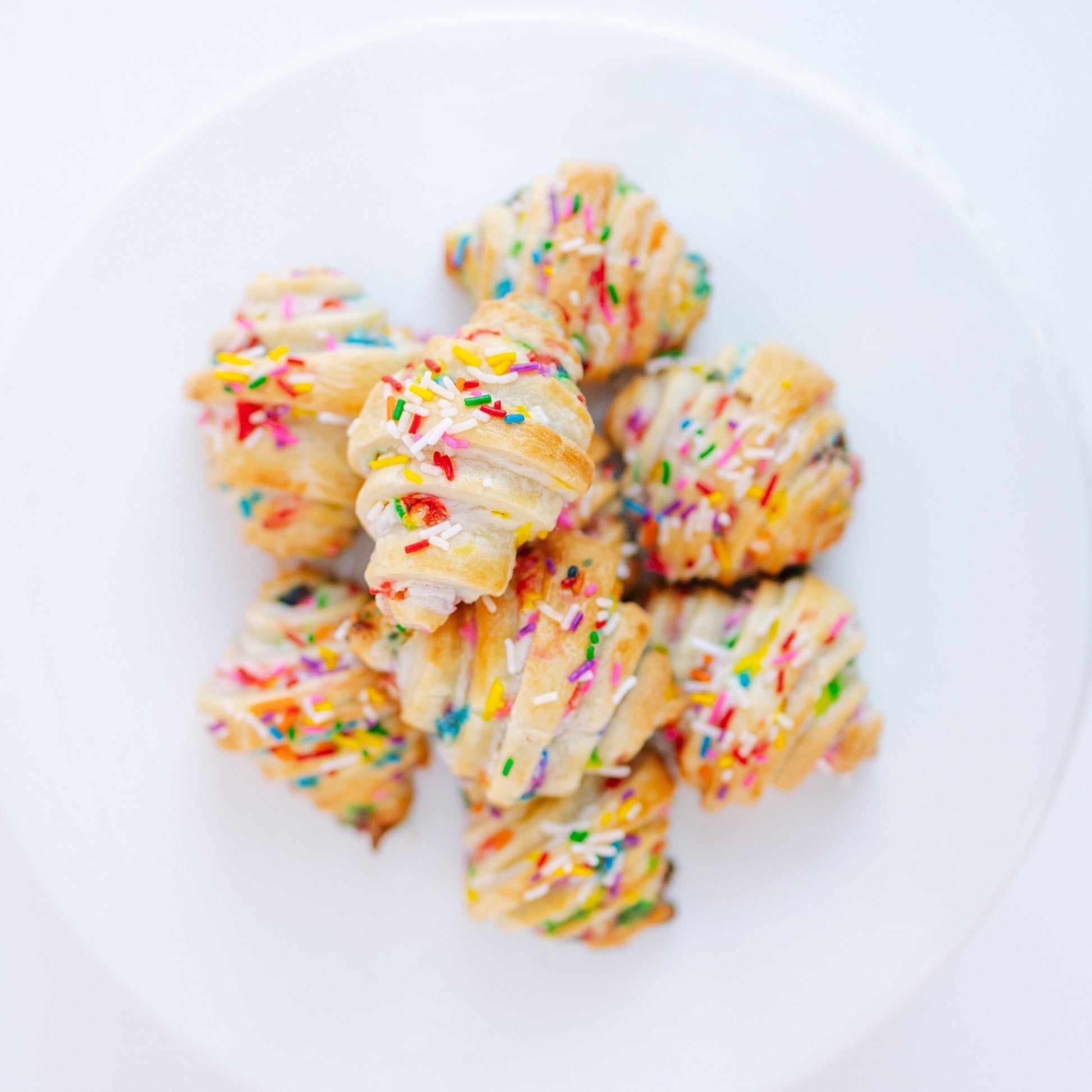 Our take on the classic Jewish pastry, a tender soft dough rolled with a sweet cream cheese filling and rainbow sprinkles.